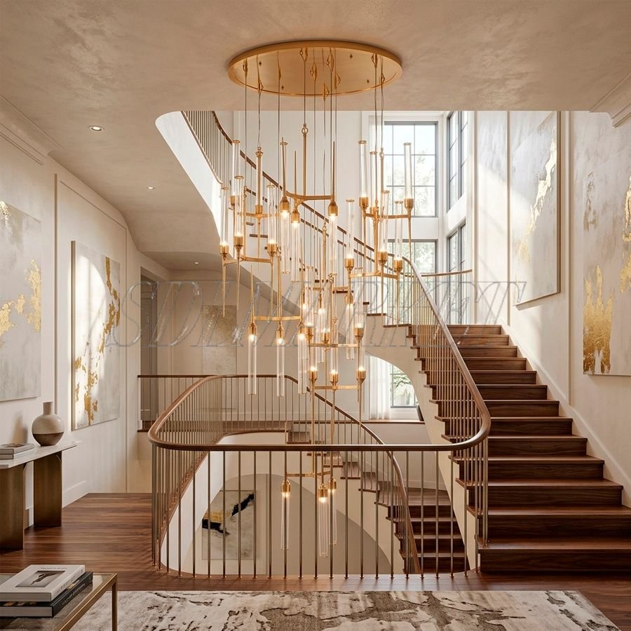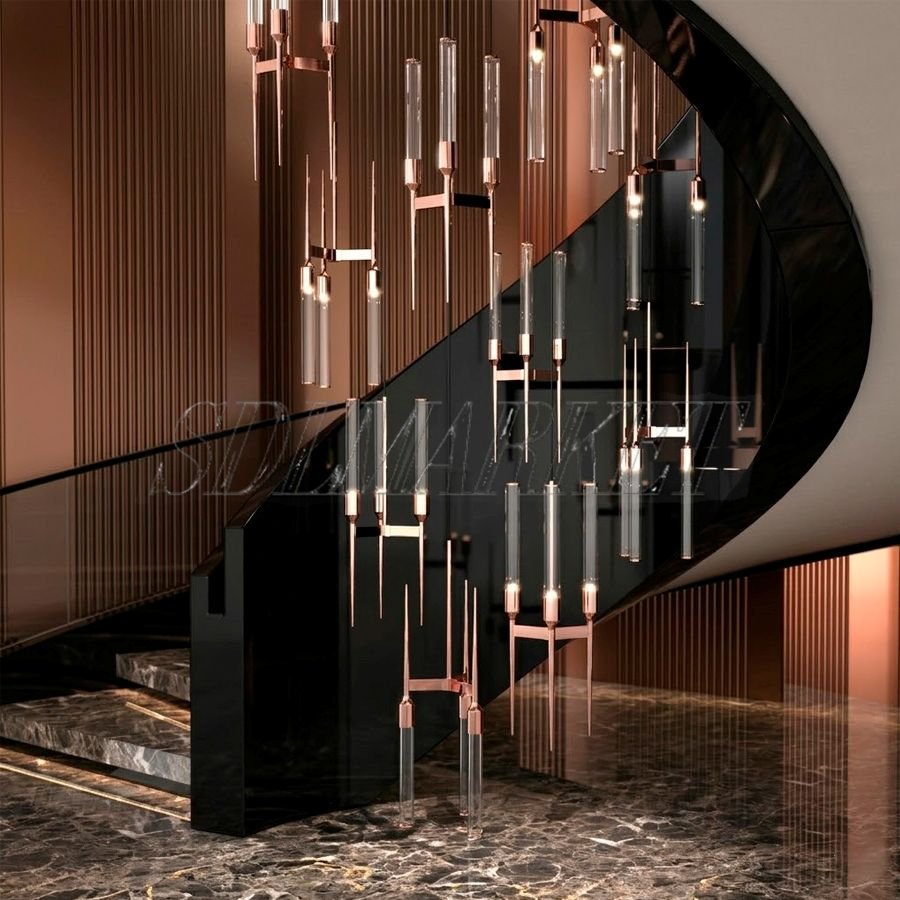 Грандиозная каскадная люстра Candle Glass VL0020-006 — это вершина инженерного и дизайнерского искусства, созданная для преображения масштабных вертикальных пространств. Основание из благородной меди в цвете светлое платиновое золото удерживает эффектную многоуровневую композицию из 30 изящных плафонов, выполненных из высококачественного прозрачного стекла. При внушительной высоте 3000 мм и диаметре 900 мм, светильник создает завораживающий эффект «светового водопада», где каждый стеклянный элемент имитирует живое пламя свечи. Использование современных ламп с цоколем G9 гарантирует безупречную яркость и комфортную световую среду. Эта модель из коллекции Candle Glass станет безупречным акцентом в интерьерах в стиле ар-деко или неоклассика, подчеркивая архитектурное величие лестничных маршей и залов с высокими потолками, наполняя их сиянием платины и атмосферой абсолютной роскоши.