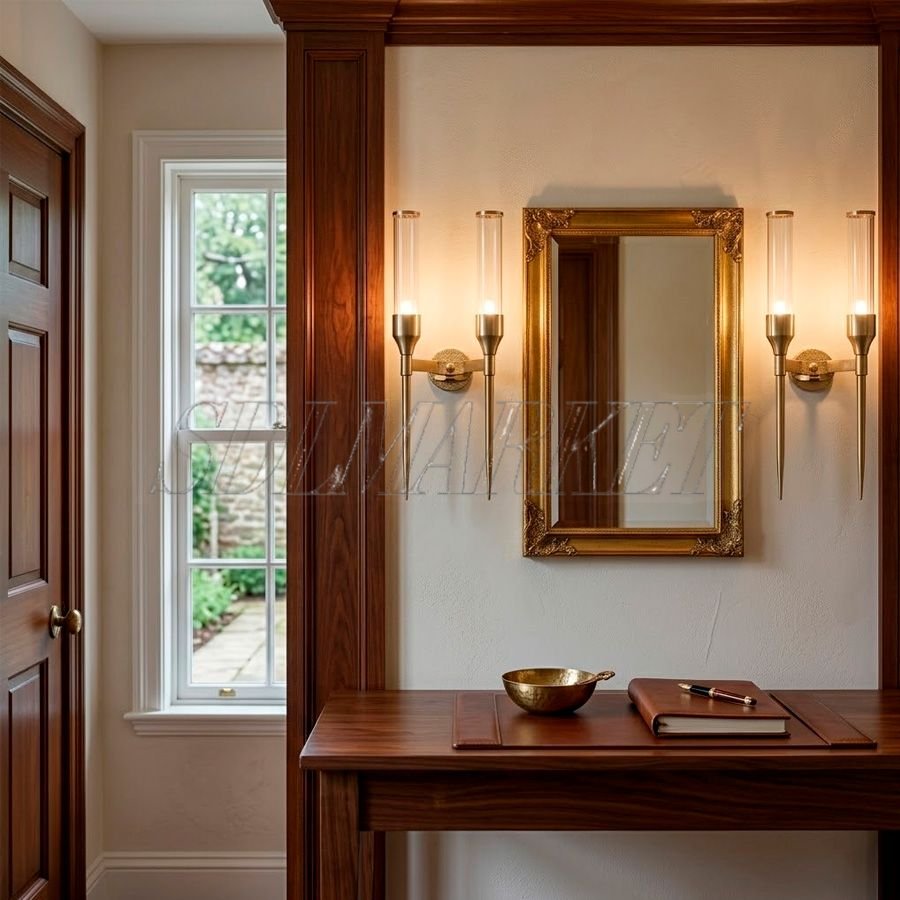 Изысканное настенное бра Candle Glass VL0020-009 — это гармоничное сочетание классической элегантности и современной эстетики, выполненное из благородной меди в цвете светлое платиновое золото. Модель оснащена двумя изящными плафонами из прозрачного стекла, форма которых имитирует высокие свечи, создавая атмосферу утонченного уюта. Благодаря использованию ламп с цоколем G9, светильник обеспечивает мягкое и комфортное освещение, а его компактные размеры (ширина 200 мм, высота 510 мм, отступ 200 мм) позволяют эффектно разместить прибор над консолью, зеркалом или в прикроватной зоне. Деликатный платиновый оттенок металла и чистота стеклянных трубок делают это бра идеальным дополнением для интерьеров в стиле неоклассика, ар-деко или мягкий минимализм, привнося в пространство нотки сдержанной роскоши.
