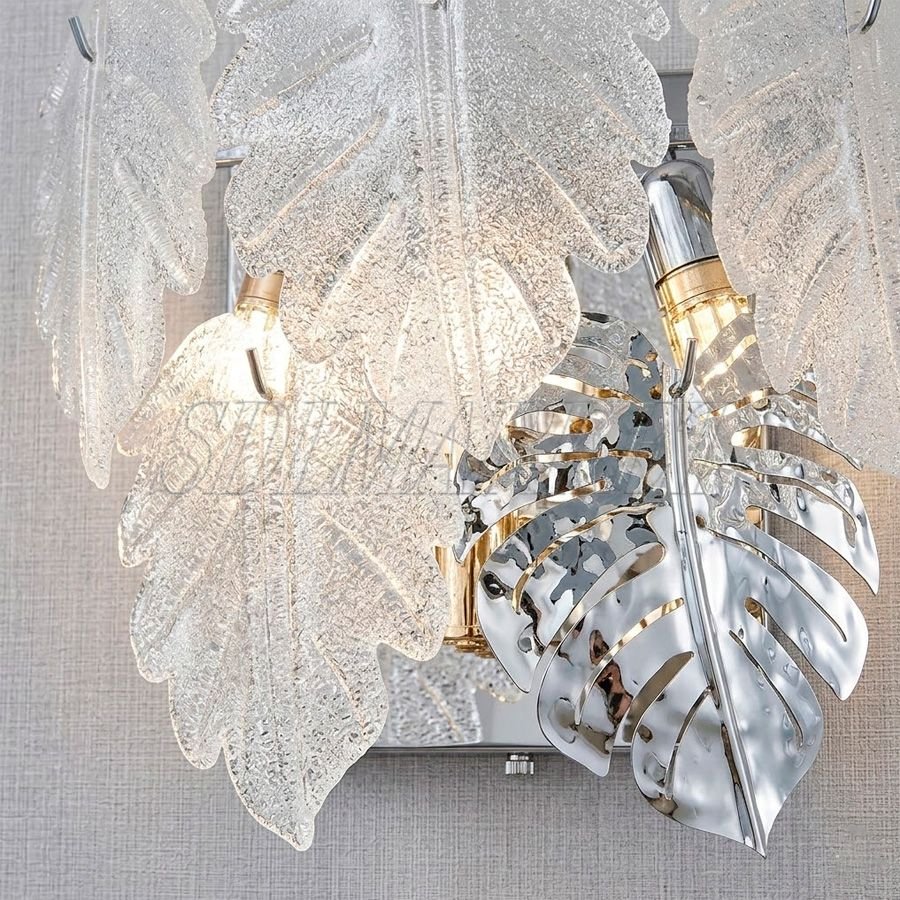 Изящный настенный светильник из коллекции Fogli (арт. MC0110-001) привносит в интерьер нотки роскоши и утонченной природной эстетики. Изготовленный из прочного алюминия с качественным гальванопокрытием в цвете хром, этот светильник декорирован уникальными элементами из стекла ручной работы, которые создают неповторимую игру света на стенах. Модель рассчитана на 3 лампы с цоколем E14 общей мощностью 81 Вт, излучающих уютный теплый свет с температурой 3000 К. Благодаря высокому индексу цветопередачи (Ra ≥ 90), бра делает оттенки предметов в комнате естественными и глубокими. При габаритах 385x330 мм этот светильник идеально подходит для акцентной подсветки в гостиной, прихожей или спальне, становясь полноценным арт-объектом в вашем доме.