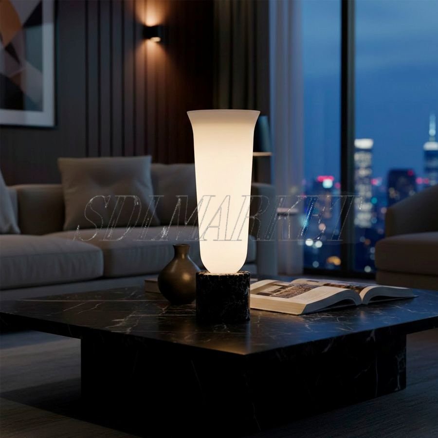 Настольная лампа из коллекции Blossom — это шедевр современного дизайна, в котором монументальность натурального мрамора встречается с хрупкой элегантностью белого нефритового стекла (white jade glass). Массивное цилиндрическое основание из черного мрамора обеспечивает лампе устойчивость и подчеркивает её премиальный статус, а изящный плафон мягко рассеивает свет, создавая уютную атмосферу. Благодаря теплой цветовой температуре 3000K и высокому индексу цветопередачи CRI ≥ 90, модель идеально подходит для создания камерного освещения в спальне или гостиной, сохраняя естественность всех оттенков интерьера. Сочетание природного камня и художественного стекла делает каждый экземпляр Blossom уникальным арт-объектом.