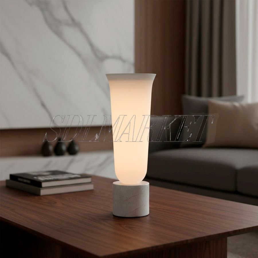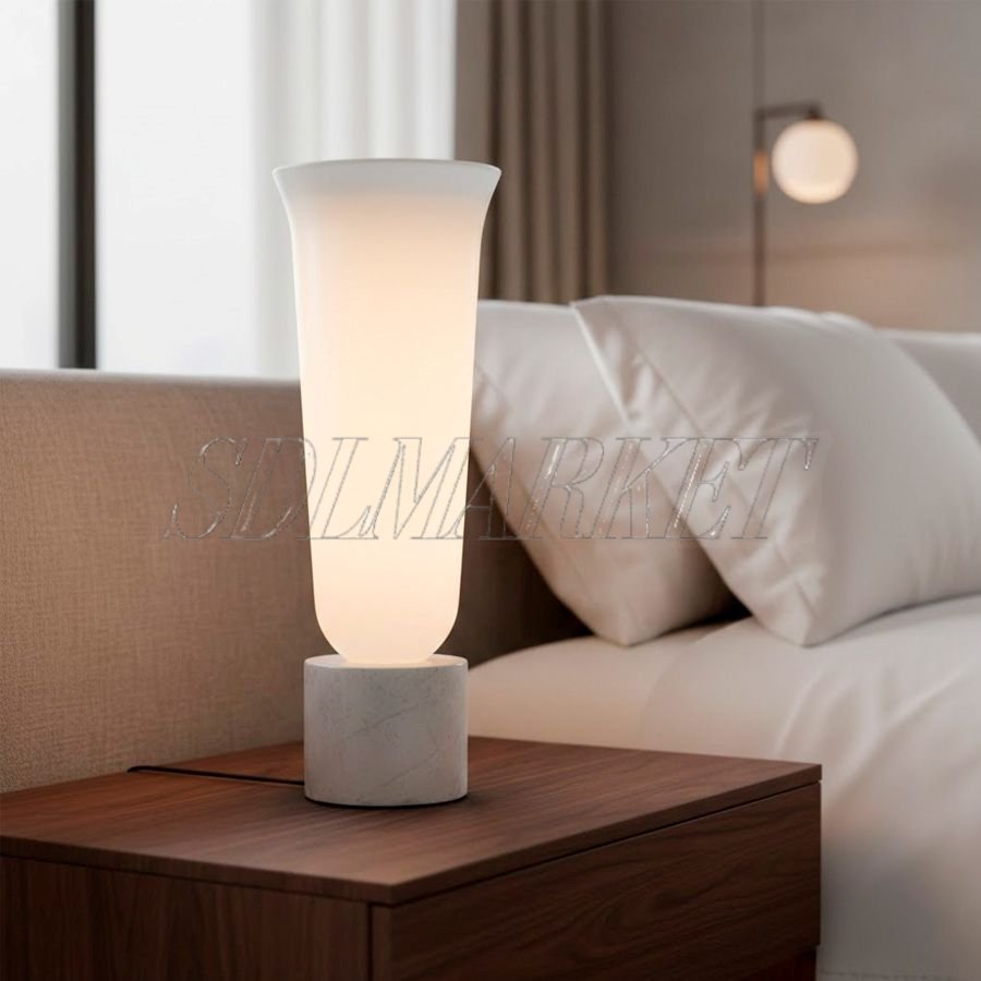 Настольная лампа из коллекции Blossom — это изысканный союз монументального природного камня и воздушного художественного стекла. Цилиндрическое основание из белого мрамора с уникальным рисунком серых прожилок обеспечивает изделию безупречную устойчивость и премиальный вид. Плафон, выполненный из белого нефритового стекла (white jade glass), мягко рассеивает свет, создавая обволакивающее теплое свечение с температурой 3000K. Благодаря компактным размерам (Φ110xH310 мм) и высокому индексу цветопередачи CRI ≥ 90, лампа не только служит стильным акцентом, но и сохраняет естественную глубину всех оттенков в интерьере. Blossom идеально дополнит светлую спальню или гостиную, привнося в пространство ощущение чистоты, гармонии и современной роскоши.