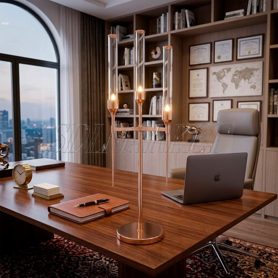 Эксклюзивная настольная лампа Candle Glass VL0020-008 представляет собой элегантный световой акцент, сочетающий в себе благородство материалов и современную эстетику. Основание прибора выполнено из высококачественной меди в цвете светлое платиновое золото, чье деликатное сияние идеально дополняют три плафона из прозрачного стекла, имитирующие изящные свечи на тонком канделябре. Благодаря внушительной высоте 1000 мм и компактному диаметру 300 мм, светильник выглядит как самостоятельный арт-объект, а использование ламп с цоколем G9 позволяет создать мягкое и комфортное локальное освещение. Модель из коллекции Candle Glass гармонично впишется в интерьеры в стиле ар-деко, неоклассика или мягкий минимализм, добавляя пространству вертикальный ритм, ощущение статуса и домашнего уюта.