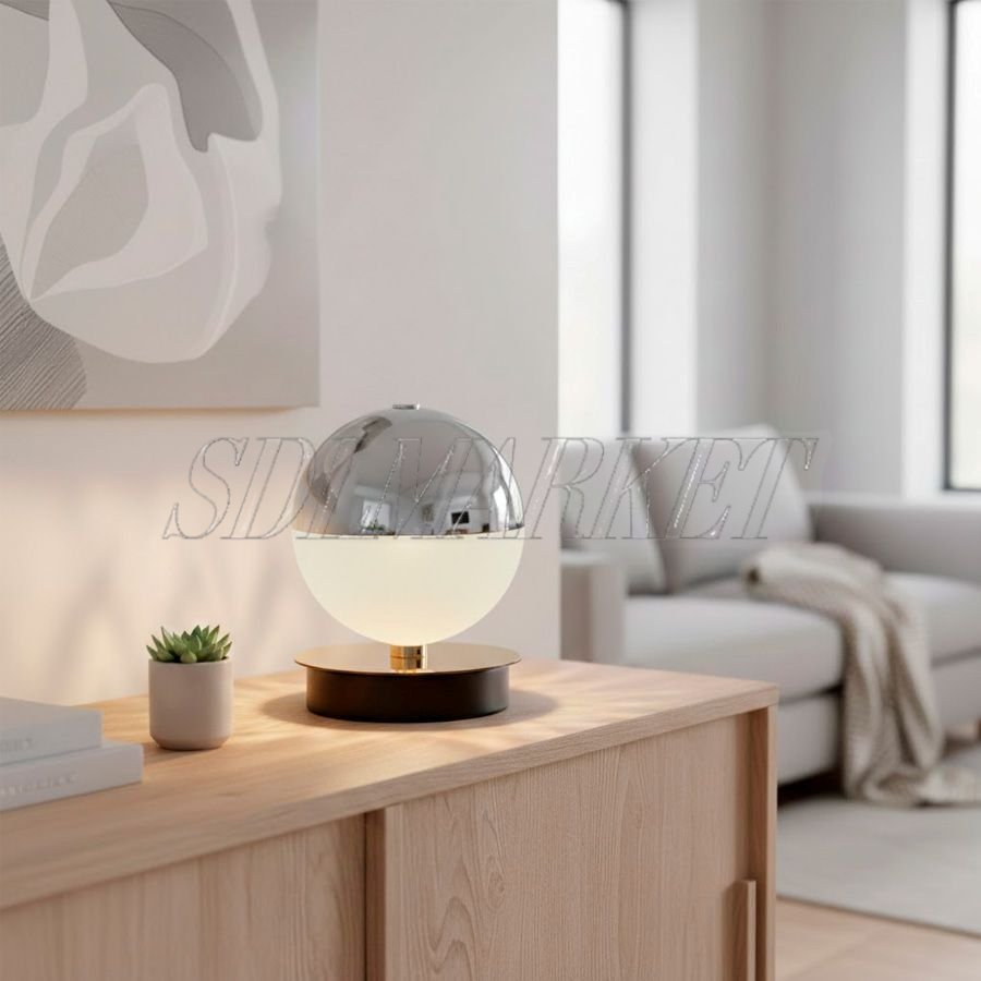 Настольная лампа из коллекции Glorious (арт. MC0060-006) — это авангардное световое решение, сочетающее в себе безупречную геометрию и премиальные материалы. Основание прибора изготовлено из нержавеющей стали с износостойким гальванопокрытием в элегантном цвете шампанского, а уникальный сферический плафон состоит из двух половин: верхней зеркально-хромированной и нижней из матового хрустального стекла. Благодаря интегрированному LED-модулю с цветовой температурой 3000 К и высоким индексом цветопередачи CRI ≥ 90, лампа создает уютное и качественное освещение, не искажающее естественные цвета интерьера. Этот стильный светильник идеально впишется в современный дизайн гостиной, спальни или рабочего пространства, выступая в роли эффектного арт-объекта, который притягивает взгляд как во включенном, так и в выключенном состоянии.