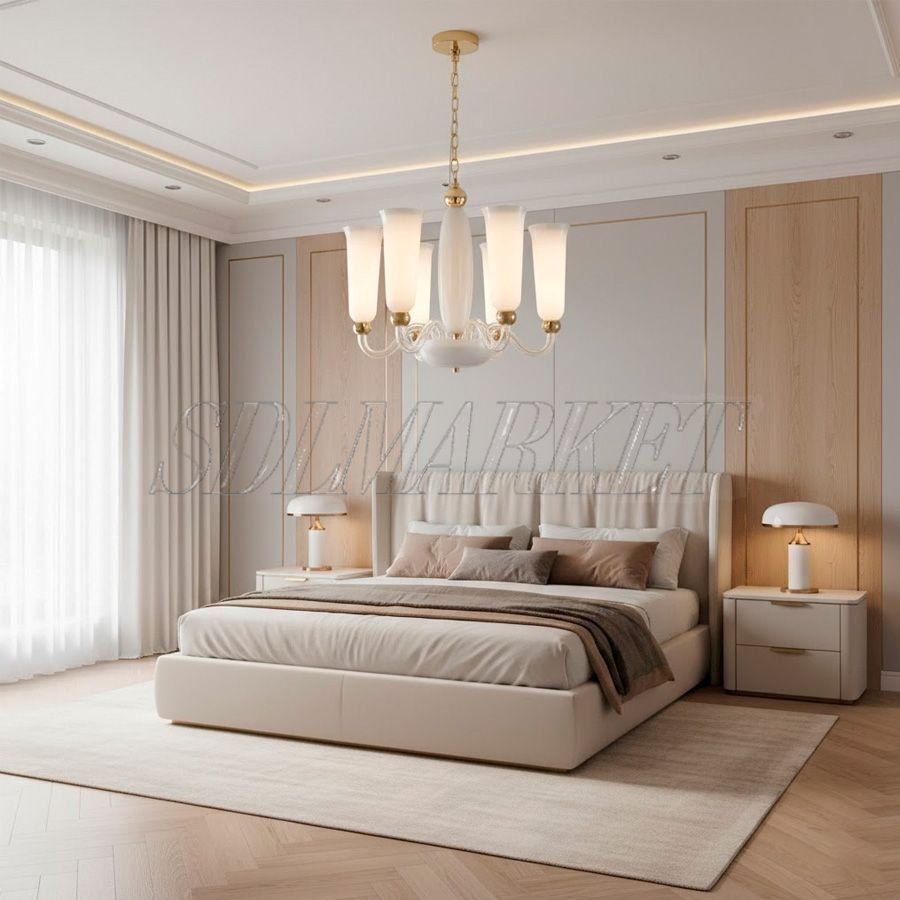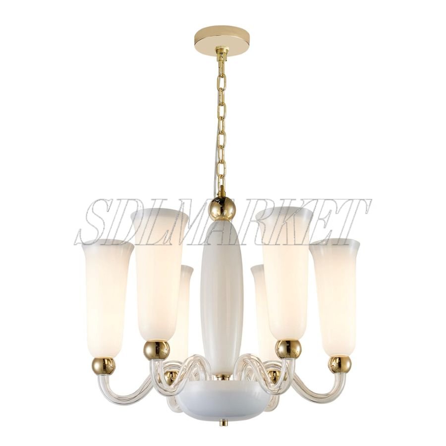 Эта элегантная люстра диаметром 600 мм и высотой 550 мм представляет собой компактную версию эксклюзивной серии из белого нефритового стекла. Сочетание высококачественной нержавеющей стали с золотым гальванопокрытием и изогнутых хрустальных трубок создает утонченный образ в стиле Modern Luxury. Благодаря мощности 63 Вт и индексу цветопередачи CRI ≥ 90, светильник обеспечивает мягкое, физиологически комфортное освещение с теплой цветовой температурой 3000 К. Компактные габариты делают её идеальным выбором для стандартных потолков в спальнях, столовых или кабинетах.