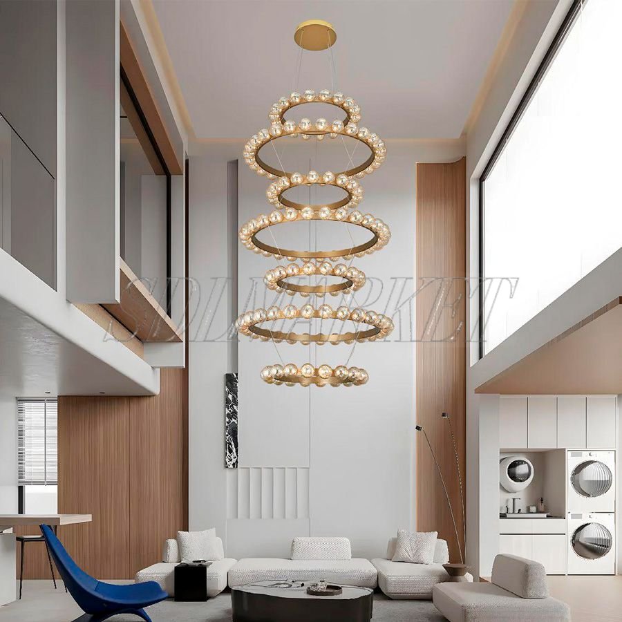 Многоярусная люстра из коллекции Bubbles (артикул MC0120-004) — это воплощение современной роскоши и геометрического совершенства, созданное для интерьеров, претендующих на эксклюзивность. Конструкция модели, состоящая из нескольких ярусов колец с декором из гальванизированного стекла, эффектно сочетается с каркасом из алюминия в благородном цвете «матовое золото шампань». Теплый свет с цветовой температурой 3000 К в сочетании с высоким индексом цветопередачи (CRI ≥ 90) наполняет пространство мягким и естественным сиянием, подчеркивая глубину текстур и делая эту люстру идеальным центральным элементом для просторных гостиных, холлов или столовых зон, где важна не только освещенность, но и визуальный статус.
