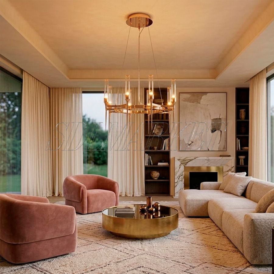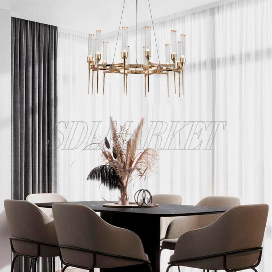 Подвесная люстра Candle Glass VL0020-003.850 — это воплощение изысканного стиля и высокого качества материалов, где основание в изтонченном цвете светлое платиновое золото гармонично сочетается с плафонами из прозрачного стекла. Модель из коллекции Candle Glass выполнена в форме классического кольца диаметром 850 мм, декорированного 12 изящными стеклянными трубками, имитирующими сияние свечей. Благодаря использованию цоколя G9 и возможности установки светодиодных ламп, этот светильник в оттенке «светлая платина» обеспечивает мягкое и эффективное освещение гостиной, столовой или просторного холла. Тонкие металлические подвесы и выверенные пропорции (высота 500 мм) позволяют интегрировать люстру в современные интерьеры в стиле неоклассика, ар-деко или минимализм, создавая атмосферу сдержанной роскоши и уюта.