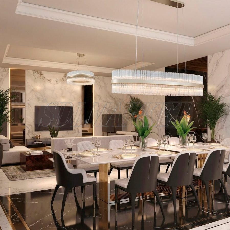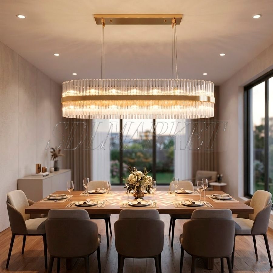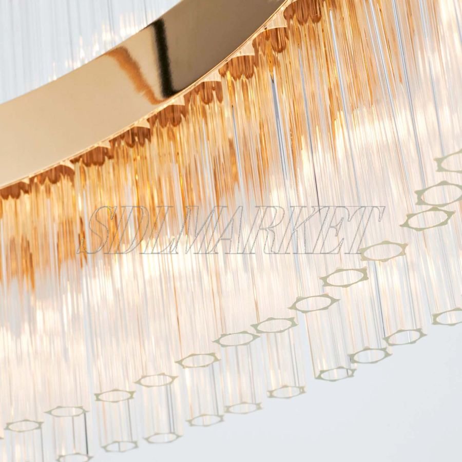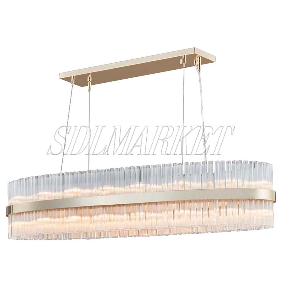 Изысканная линейная люстра из коллекции Crystal Magic (артикул VL0040-002) — это воплощение современной роскоши и технического совершенства. Основание модели выполнено из высококачественной меди в эксклюзивном оттенке светло-платинового золота, что придает конструкции благородный блеск и долговечность. Главным украшением служат плафоны из прозрачного стекла ручной работы (K9 Crystal), которые мастерски преломляют свет 34 ламп, создавая в помещении завораживающую игру бликов. Благодаря внушительной длине 1300 мм, эта дизайнерская люстра идеально подходит для освещения обеденных зон, кухонных островов или просторных гостиных в стиле неоклассика и ар-деко.