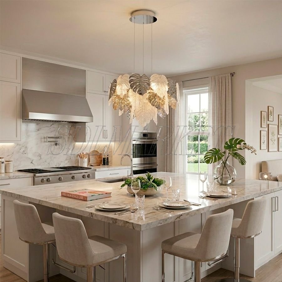 Подвесная люстра из коллекции Fogli (арт. MC0110-002) — это воплощение элегантности и современного стиля, созданное для ценителей утонченного дизайна. Модель выполнена в цвете хром из алюминия с гальванопокрытием и декорирована изысканными деталями из стекла ручной работы, которые создают неповторимую игру света и тени. Люстра оснащена 9 цоколями типа E14 общей мощностью 81 Вт, обеспечивающими комфортную цветовую температуру 3000 К. Благодаря высокому индексу цветопередачи (Ra ≥ 90), освещение максимально точно передает естественные оттенки предметов, подчеркивая статусность интерьера. При диаметре 600 мм и высоте 370 мм эта модель идеально подходит для акцентного освещения обеденных зон, уютных гостиных или спален, наполняя пространство атмосферой тепла и роскоши.