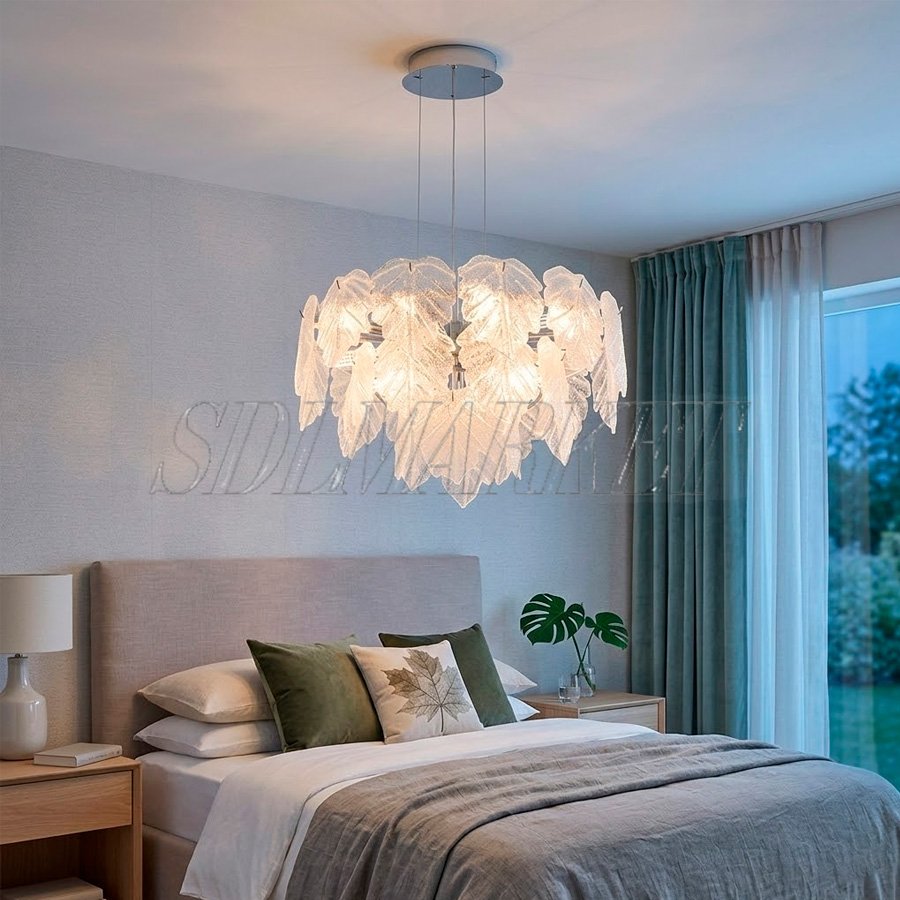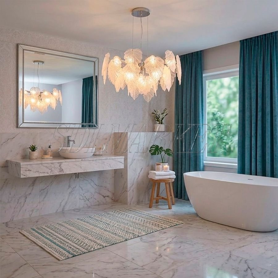 Подвесная люстра из коллекции Fogli (арт. MC0110-005) — это воплощение природной эстетики в современном исполнении, где центральным элементом выступает каскад из стекла ручной работы, имитирующий нежную листву. Арматура выполнена из высококачественного алюминия с долговечным гальваническим покрытием в цвете «глянцевый хром», что придает модели изысканный блеск и устойчивость к внешним воздействиям. Благодаря девяти лампам с цоколем E14 и общей мощностью 81 Вт, люстра обеспечивает яркое, но мягкое освещение с цветовой температурой 3000 К, создавая атмосферу домашнего тепла. Особое внимание уделено качеству света: индекс цветопередачи CRI ≥ 90 гарантирует, что все оттенки интерьера будут выглядеть максимально естественно и насыщенно, как при дневном освещении.