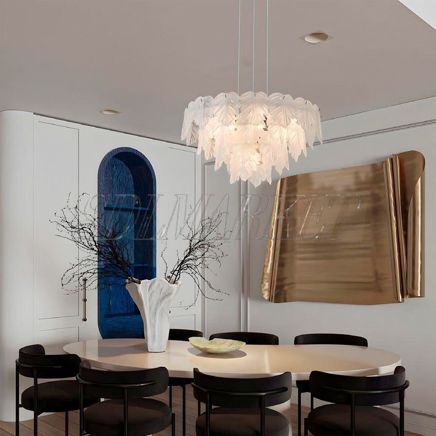 Подвесная люстра Fogli (артикул MC0110-006) — это флагманская модель коллекции, созданная для освещения масштабных пространств и парадных интерьеров. Светильник диаметром 800 мм представляет собой роскошный многоуровневый каскад из стекла ручной работы, закрепленного на надежной алюминиевой фурнитуре с высококачественным гальваническим покрытием в цвете хром. Благодаря 18 источникам света с цоколем E14 и суммарной мощности 162 Вт, люстра наполняет помещение мягким, но интенсивным светом с уютной температурой 3000 К. Высочайший индекс цветопередачи CRI ≥ 90 гарантирует безупречную естественность всех оттенков в интерьере, делая этот светильник не просто источником света, а доминирующим декоративным элементом, подчеркивающим статус и вкус владельца.