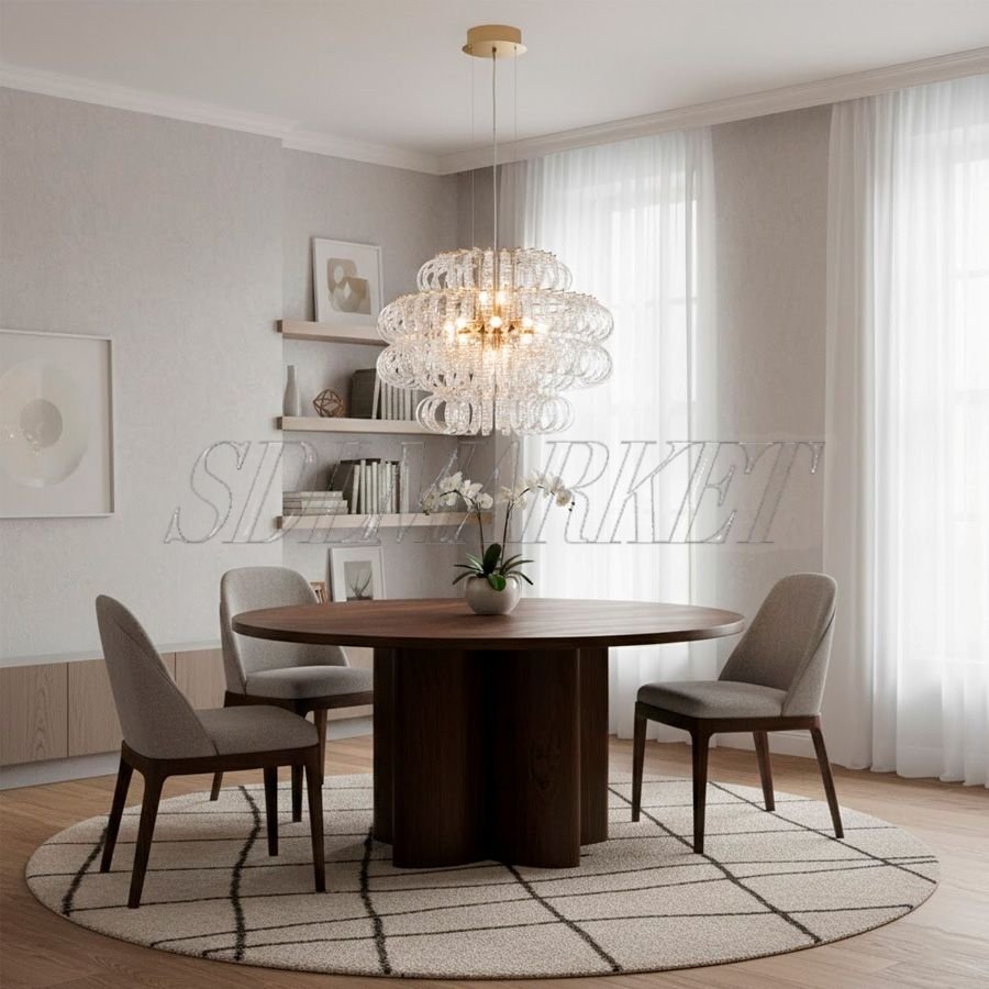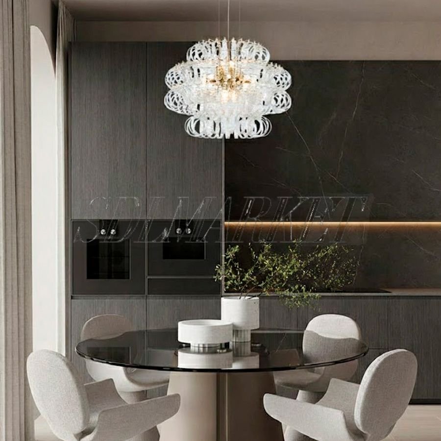 Дизайнерская подвесная люстра из эксклюзивной коллекции Halo Glass в золотистой глазури представляет собой гармоничный симбиоз индустриальной прочности и художественного изящества. Корпус из высококачественной нержавеющей стали с долговечным гальванопокрытием служит надежной основой для каскада элементов из стекла ручной работы, которые создают неповторимую игру бликов. Модель оснащена 14 лампами с цоколем G9 суммарной мощностью 70 Вт, обеспечивающими комфортное освещение с теплой цветовой температурой 3000 К. Благодаря высокому индексу цветопередачи ≥ 90, светильник сохраняет естественную сочность красок интерьера, а выверенные габариты (диаметр 600 мм, высота 430 мм) позволяют выигрышно разместить его в гостиной или столовой. Купить люстру Halo Glass — значит наполнить пространство мягким сиянием и подчеркнуть безупречный вкус владельца.