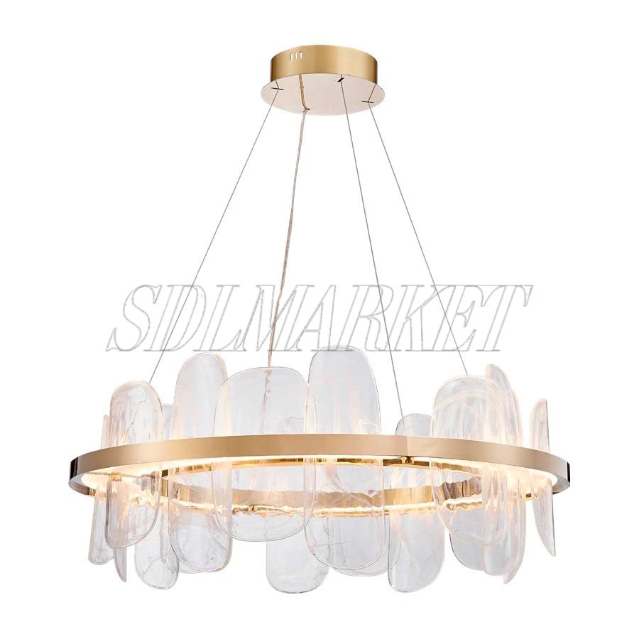 Подвесная люстра MC0190-002 — это воплощение элегантного контраста, давшего название коллекции Ice and Fire («Лед и Пламя»). Средний формат в линейке (диаметр 880 мм) делает её универсальным решением для помещений площадью до 20 м². Основание выполнено из высококачественной нержавеющей стали с гальваническим покрытием в оттенке «зеркальное золото цвета шампанского». Декоративные элементы из белого нефритового стекла ручной работы мягко рассеивают свет, имитируя тающий лед, сквозь который пробивается теплое «пламя» светодиодов.