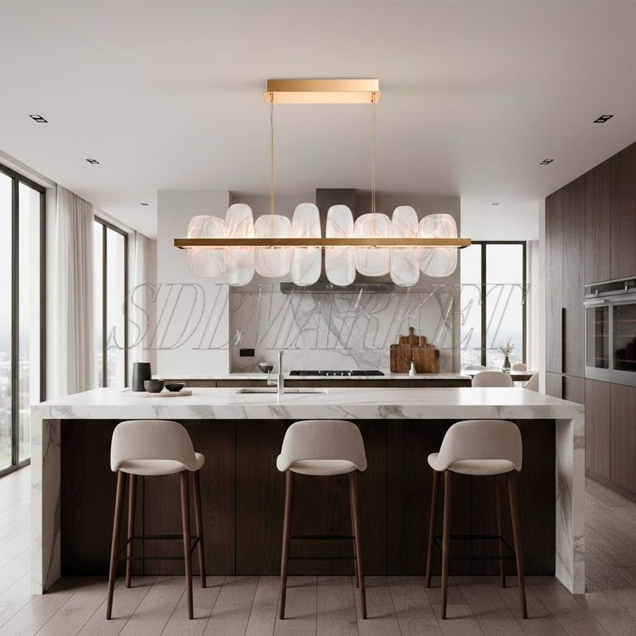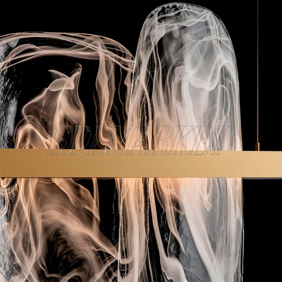 Линейная люстра MC0190-006 длиной 1500 мм — это торжество эстетики и масштаба в серии Ice and Fire. Величественный каркас из нержавеющей стали с премиальным гальваническим покрытием «зеркальное золото цвета шампанского» удерживает массив выразительных элементов из стекла ручной работы. Каждая стеклянная деталь уникальна и напоминает пластину льда, подсвеченную изнутри теплым «пламенем» встроенных LED-модулей. Благодаря высокому индексу цветопередачи CRI ≥ 90, люстра не просто освещает, а преображает пространство, сохраняя естественную глубину всех оттенков интерьера.