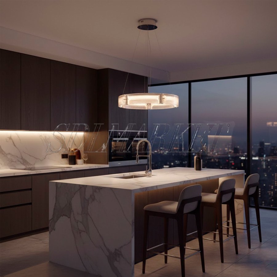 Компактная и изящная кольцевая люстра из коллекции Spark в цвете «хром» — это идеальный баланс между современным минимализмом и классической роскошью. Корпус из нержавеющей стали с безупречным гальваническим покрытием дополнен декоративными панелями из фактурного стекла ручной работы, которые мягко преломляют свет, создавая живую игру бликов. С мощностью 63 Вт и теплой цветовой температурой 3000K светильник обеспечивает комфортное освещение, а высокий индекс цветопередачи CRI ≥ 90 гарантирует, что все детали вашего интерьера будут выглядеть естественно и насыщенно. Благодаря универсальному диаметру 600 мм, модель Spark великолепно подойдет для освещения спален, средних гостиных или обеденных зон, привнося в пространство легкость и утонченный стиль.