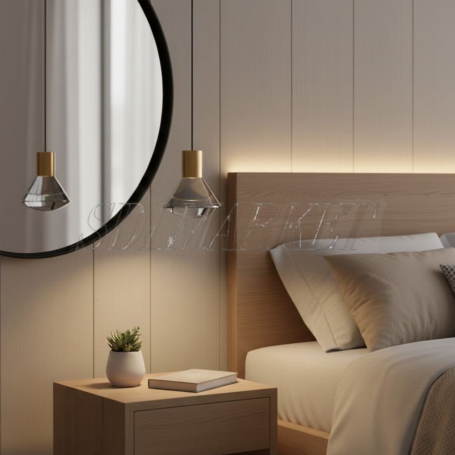 Эти подвесные светильники — идеальное сочетание современной роскоши и минимализма. Изготовленные из светлой латуни, они привносят в интерьер благородное тепло. Акриловый плафон с его характерной огранкой имитирует хрусталь, но выглядит более современно. Он мастерски преломляет свет, создавая на стенах мягкие направленные лучи и уютную атмосферу. Благодаря сочетанию латунного основания и прозрачного акрила, светильники кажутся легкими, почти невесомыми, при этом оставаясь выразительным акцентом любого помещения.