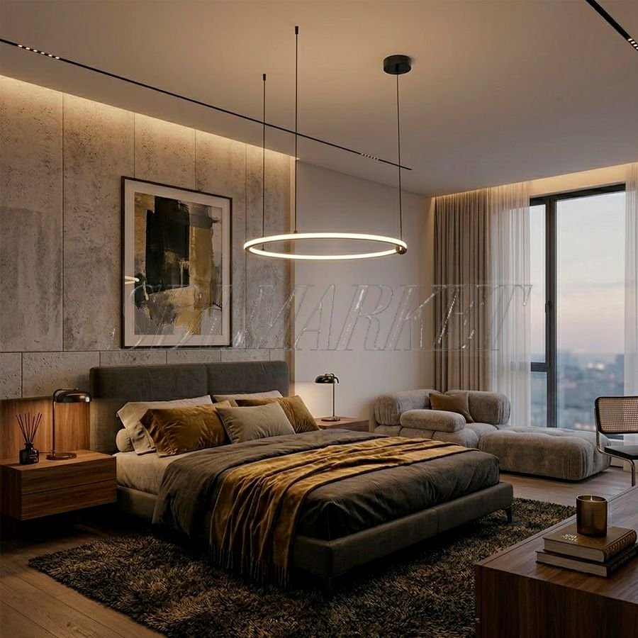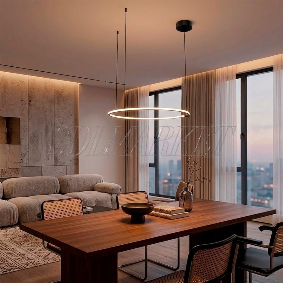 Подвесная люстра из коллекции Brass Light (артикул EX0150-002) диаметром 600 мм станет идеальным дополнением современного интерьера в стиле минимализм или лофт. Основание светильника выполнено из благородной матово-черной латуни, которая гармонично сочетается с кольцевым плафоном из качественного белого акрила, расположенного по обеим сторонам металлического профиля. Благодаря мощности 36 Вт, данная модель обеспечивает мягкое, равномерное распределение света без мерцания, создавая уютную атмосферу в помещении. Купить дизайнерский светодиодный светильник из латуни — значит выбрать безупречный стиль, долговечность материалов и передовые технологии освещения для вашего дома или офиса.