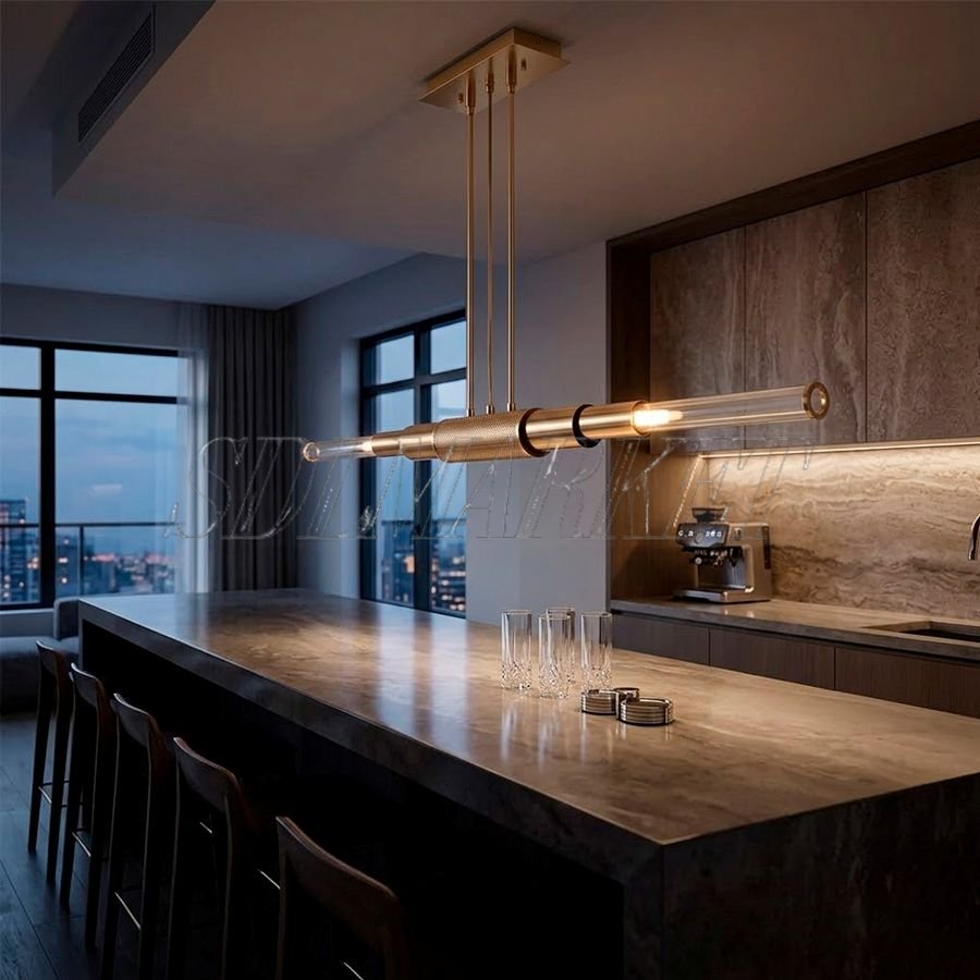 Линейный светильник из эксклюзивной коллекции Candle Glass (артикул VL0020-001) представляет собой утонченное решение для акцентного освещения просторных интерьеров. Ключевой особенностью модели является её внушительная длина 1200 мм, что в сочетании с компактным диаметром 80 мм позволяет гармонично расположить светильник над длинными барными стойками или обеденными столами. Основание выполнено из натуральной меди, подчеркивающей премиальный статус изделия, а плафон из прозрачного стекла обеспечивает безупречную эстетику и безопасность. Светильник оснащен двумя лампами с цоколем G9, создающими мягкий, но направленный световой поток, который эффектно преломляется сквозь стеклянные грани, наполняя пространство уютом и стилем.