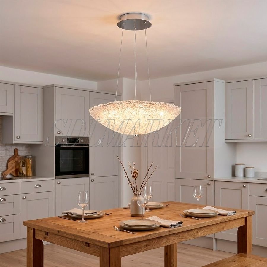 Подвесной светильник Glitter (артикул MC0080-003) представляет собой идеальный баланс между современным ювелирным дизайном и функциональным освещением. Плафон диаметром 500 мм выполнен из уникального фактурного стекла ручной работы, имитирующего игру света на поверхности льда, что в сочетании с основанием из зеркального хрома создает роскошные визуальные эффекты. Модель оснащена энергоэффективным LED-источником с теплой цветовой температурой 3000 К и профессиональным индексом цветопередачи CRI ≥ 90, что гарантирует сохранение естественных оттенков интерьера и создание уютной атмосферы. Этот дизайнерский подвес на тросах станет безупречным акцентом в зоне обеденного стола, гостиной или спальни, гармонично дополняя пространства в стилях ар-деко, неоклассика и минимализм.