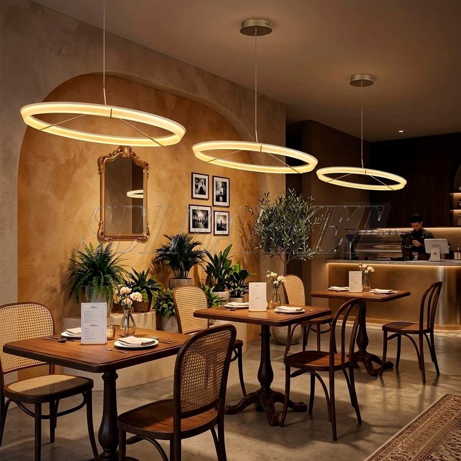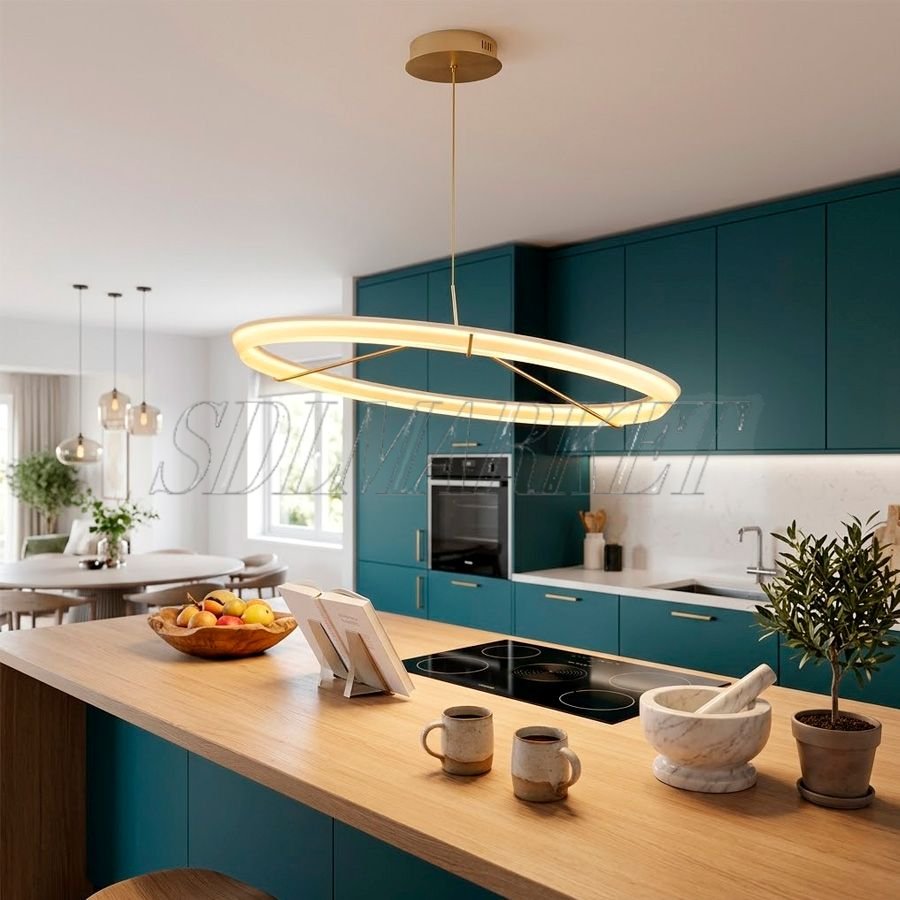 Подвесная люстра из коллекции Halo (артикул ED0020-004) станет изысканным акцентом в современном интерьере, сочетая в себе минимализм и роскошь. Основание светильника выполнено из прочного металла в цвете благородного золота, что придает конструкции визуальную легкость и премиальный вид, а кольцевой плафон из высококачественного белого акрила обеспечивает мягкое, комфортное для глаз рассеивание света. Благодаря внушительному диаметру 800 мм и возможности монтажа под наклоном, эта модель идеально подходит для освещения гостиных, а также для создания стильной атмосферы в кафе и ресторанах, где она может использоваться как одиночно над столиками, так и в составе масштабных световых композиций. Тонкий профиль высотой всего 40 мм и эстетика стиля хай-тек позволяют наполнить пространство воздухом, обеспечивая при этом эффективное и уютное освещение коммерческих и жилых зон.