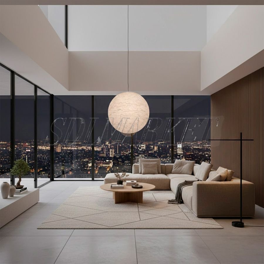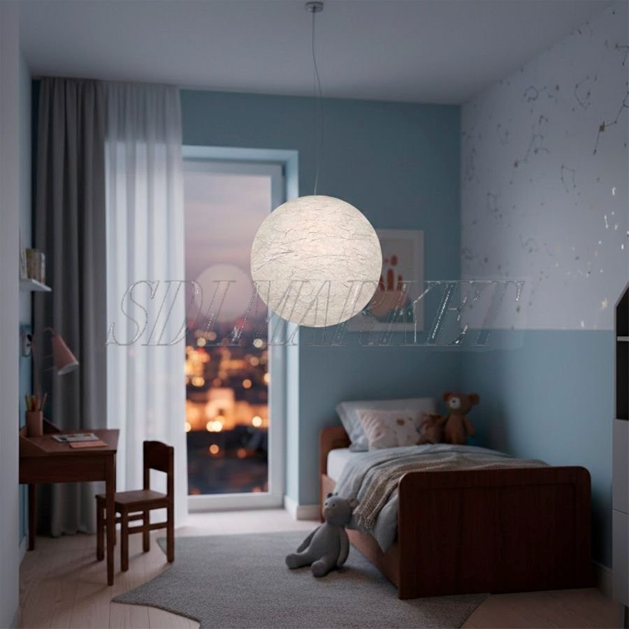 Этот подвесной светильник диаметром 800 мм представляет собой элегантное сочетание современного минимализма и уютной эстетики Japandi, где сферический плафон из инновационного пластика с шелковой фактурой создает мягкое, обволакивающее свечение. Уникальная текстура с тонкими хаотичными линиями превращает прибор в выразительный арт-объект, а внушительная длина провода в 2800 мм позволяет легко адаптировать его для просторных помещений с высокими потолками.