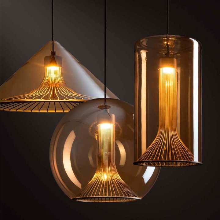 Дизайн этих светильников заключается в том, чтобы материализовать свет и показать форму света через провод. Лампа разделена на внутреннюю и внешнюю части. Внешняя часть представляет собой геометрический стеклянный абажур. Внутренний провод символизирует свет. Источник света освещает металлический контур и стеклянный абажур соответственно, формируя двойное ощущение света.